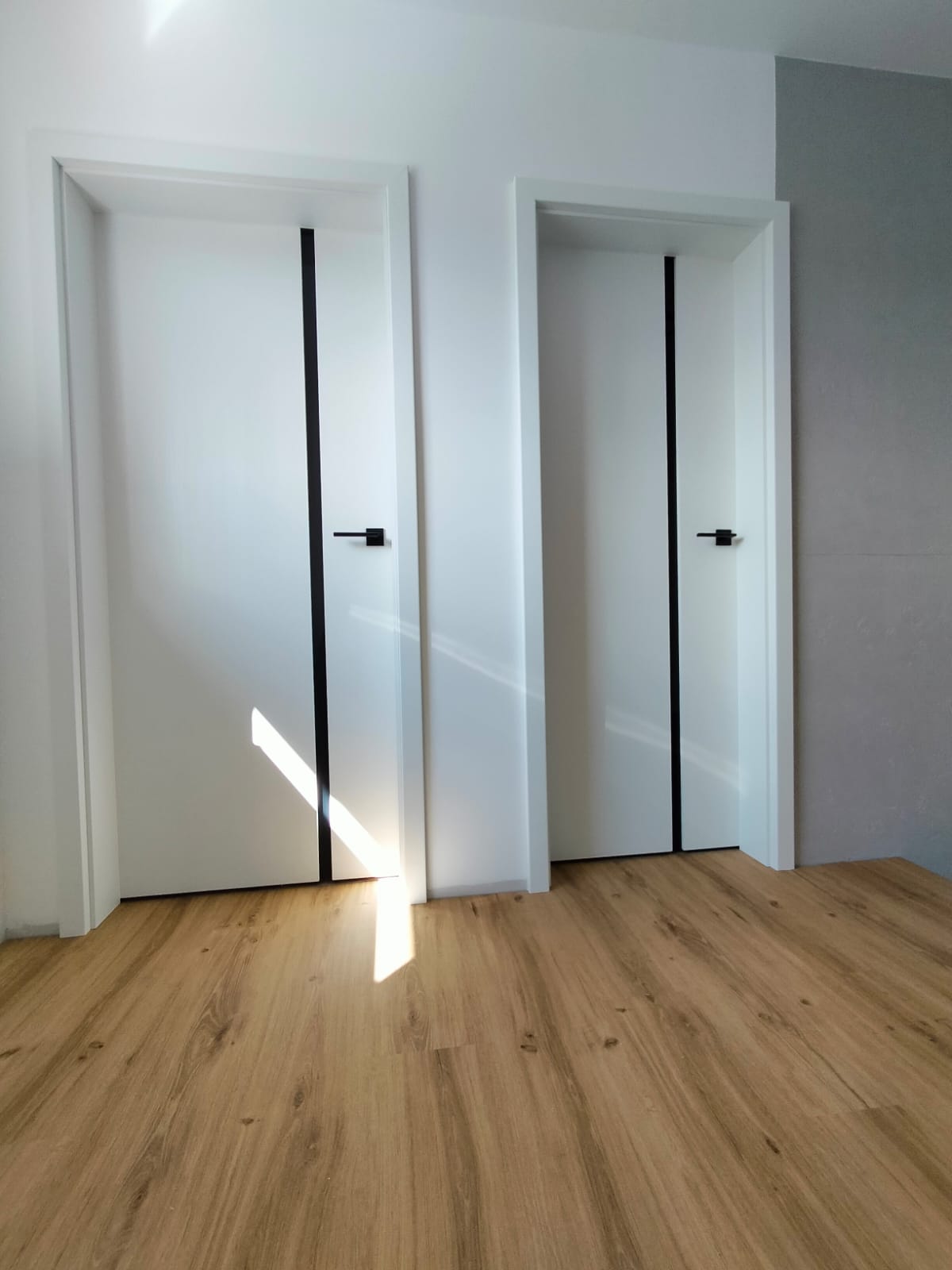 Dveře byly instalovány v různých provedeních – jako klasické otočné i posuvné do pouzdra. Díky tomu je možné efektivně pracovat s prostorem a přizpůsobit řešení každé místnosti podle její funkce.